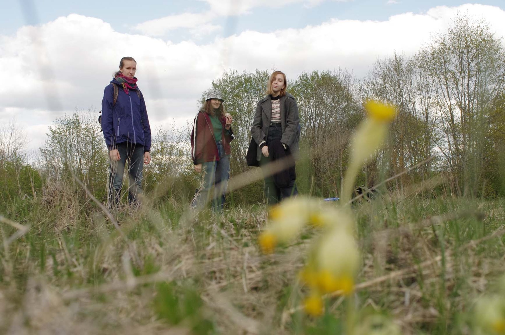 Loodushoiu ja keskkonnakaitse kursuse õpilased nurmenukuvaatlusel