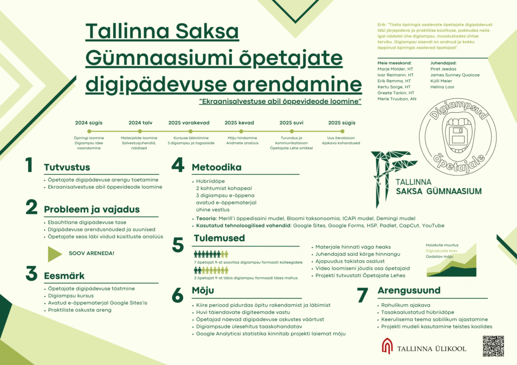 Tallinna Saksa Gümnaasiumis jõudis lõpule mahukas arendusprojekt koostöös Tallinna Ülikooliga, mille käigus võtsid meie haridustehnoloogia õpiringi õpetajad fookusesse oma digioskuste lihvimise.