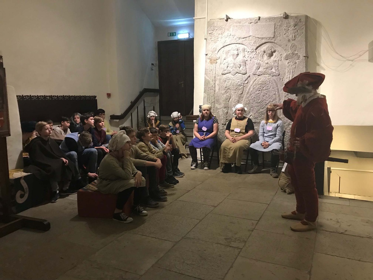 7.bc klassid õppekäigul Niguliste muuseumis haridusprogrammis „Keskaja kool 1519“