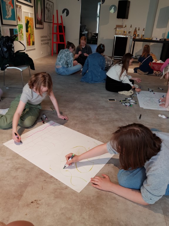 RohelineTallinn5. b tüdrukud joonistamas ühistöödv